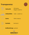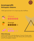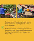 In der Region Sidamo, auf bis zu 2.200 Metern Höhe ⛰️, bauen Kleinbauern ihre Bohnen mit großer Sorgfalt an 🤲. Nach der Handernte werden die Kirschen 🍒 gewaschen und auf afrikanischen Trockenbetten getrocknet. Das Ergebnis ist ein eleganter, fruchtiger Kaffee mit Noten von Aprikose 🍑, Orange 🍊 und einer feinen Süße 🍯.