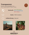 Die Rohbohnen aus Guatemala stammen von der Finca El Duranzano. Die Finca  steht für hochwertige Kaffees. Hierfür verwenden sie hochwertiges Saatgut, state-of-the-art Bewirtschaftungstechnologie und das Ökosystem ist ihnen auf der Plantage besonders wichtig. Deshalb produziert die Finca nachhaltige Kaffeebohnen.